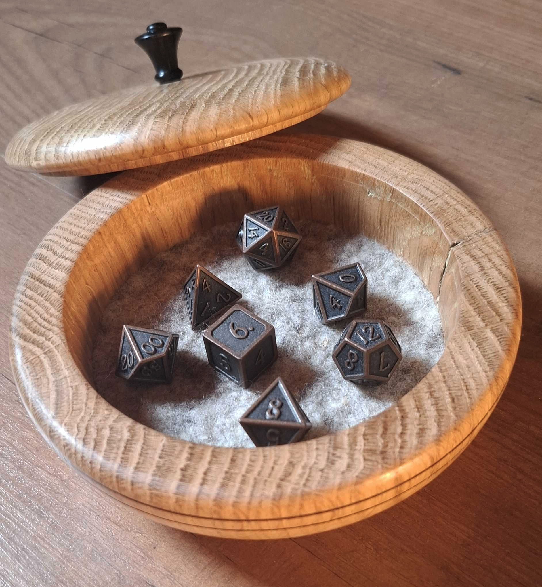 Du 4 ou 31 août, nous avons organisé un petit concours sur Instagram afin de gagner une magnifique boîte à dés (sans les dés) en chêne massif confectionnée par ses soins.